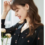 betu百图女装时尚双层领长袖衬衫女春宽松垂感法式雪纺衫新款JD2102T28 黑色 M